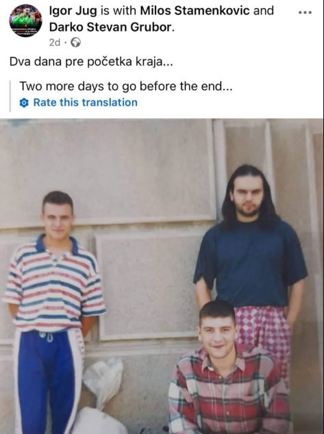 Игор Југ, осуденик за настаните од 27 април, кој беше на прекин од затворската казна поради здравствени причини, почина на 54-годишна возраст. Само два дена пред смртта, тој на својот Фејсбук профил напиша: „Уште два дена до крајот“, а шест часа пред да почине, објави статус кој предизвикува бројни прашања.