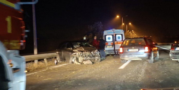 Вечерва на автопатот Скопје–Велес, кај Петровец се случи сообраќајна несреќа во која, според првичните информации, едно патничко возило излетало од коловозот и удрило во заштитната ограда (банкина).