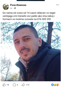 Според информациите што ги објави неговата мајка, Роза Илиоска, на младиот прилепчанец му се губи секаква трага.