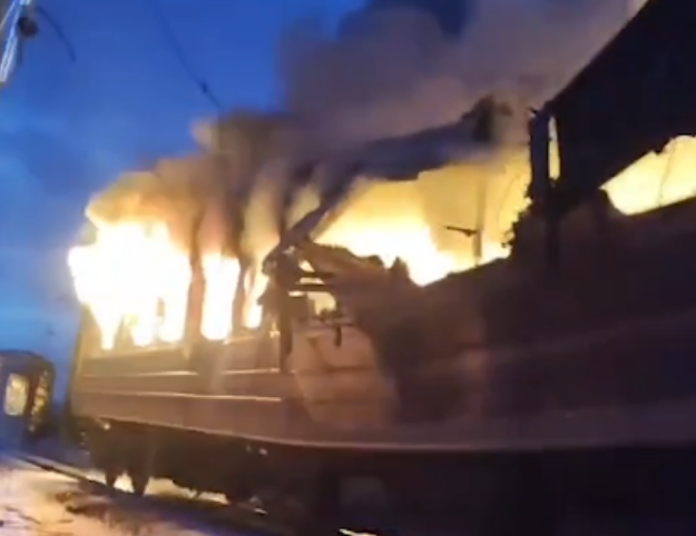 Кулеба посочи дека руските сили го нападнале возот со три дрона од типот „Шахид“, што предизвикало пожар.