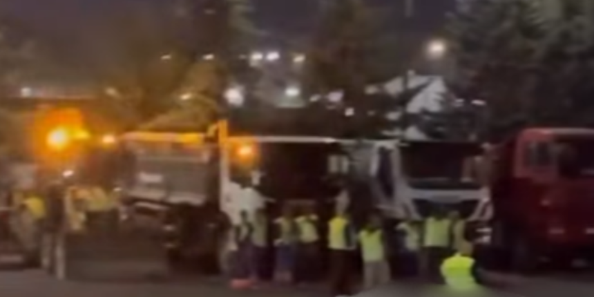 Погледнете моментално кај салата „Борис Трајковски“ колку камиони се подготвени за акцијата.