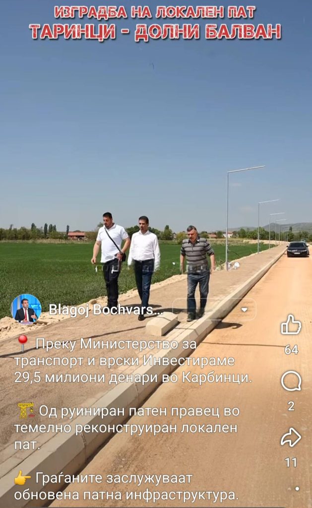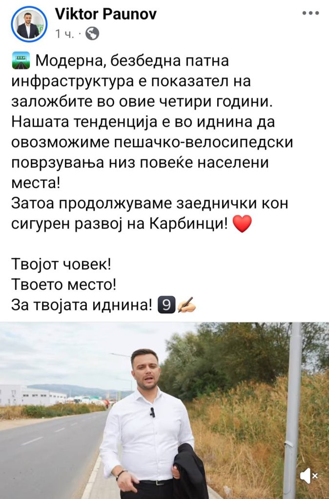 Паунов на својот Фејсбук профил се пофали дека направил ллокален пат, кој всушност е направен од СДСМ кога беа централна власт и од тогашниот министер за транспорт и врски, Благој Бочварски.