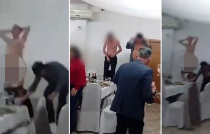 Снимки од прославата брзо се проширија на социјалните мрежи, прикажувајќи гостин кој се качува на маса, го симнува долниот дел од облеката и танцува гол, додека дел од присутните реагираат со смеење и навивање.